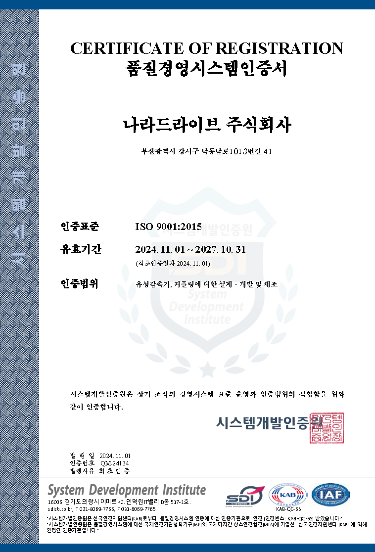 나라드라이브㈜는 나라오토시스㈜가 50년에 걸쳐 축적한 동력전달 기술력과 세계를 향한 끊임없는 도전정신을 이어받아, 커플링과 기어헤드분야에서 글로벌시장의 새로운 리더로 도약하겠습니다. 고객의 현장에 더 높은 효율과 가치를 제공하는 것 그것이 우리의 사명입니다.