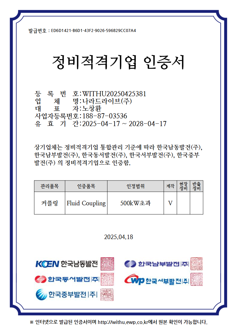 - 04. 발전5사 정비적격기업 인증